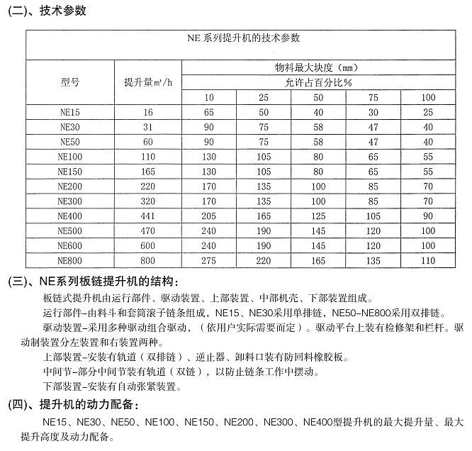 NE15板鏈?zhǔn)蕉肥教嵘龣C提升量:16m3/h